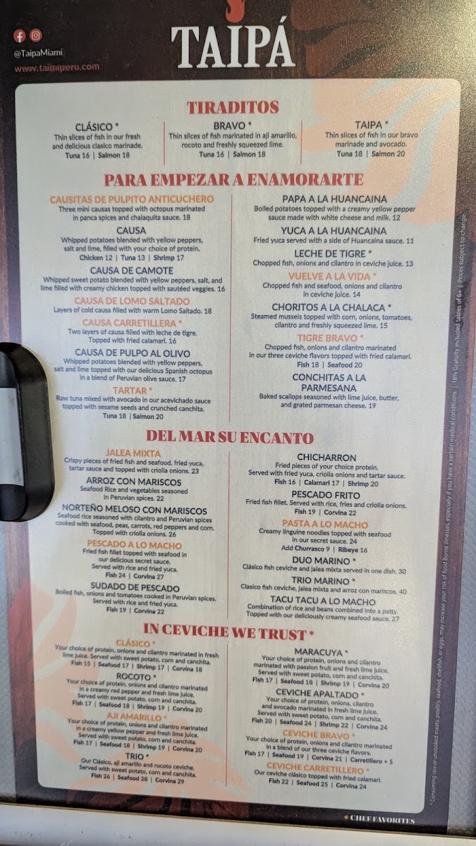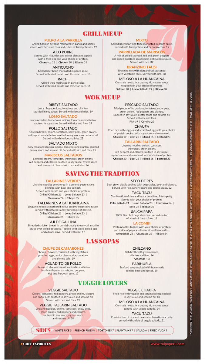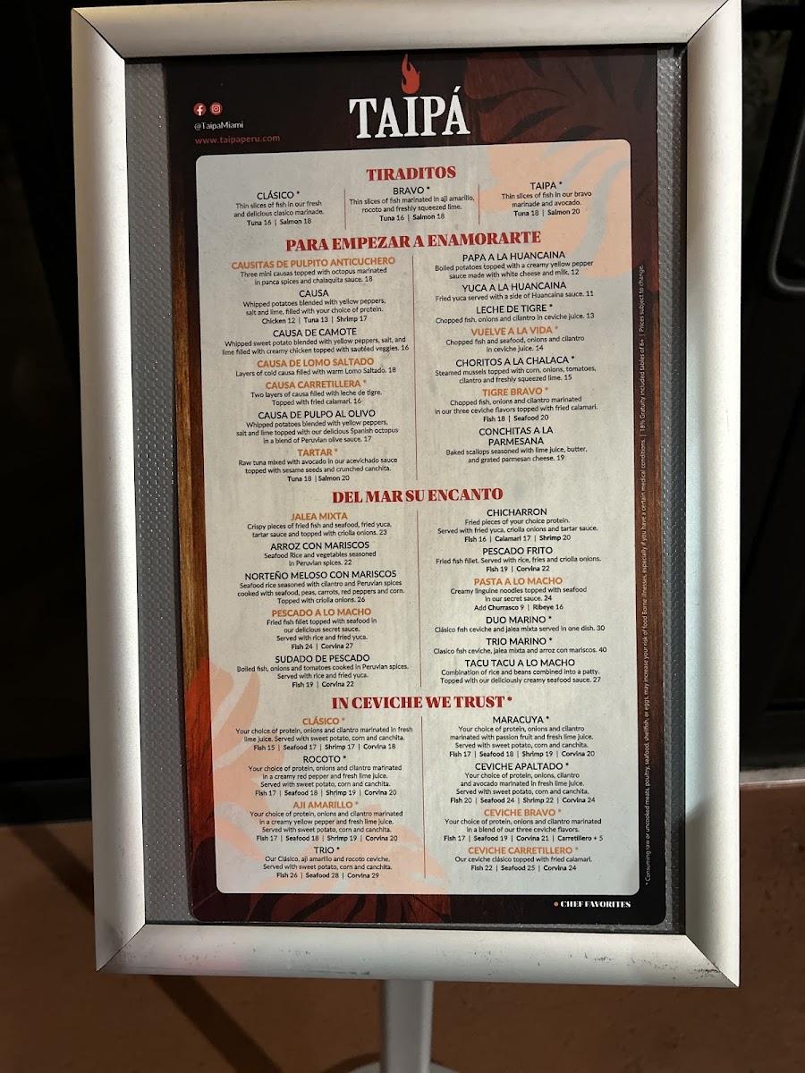 Taipa Peruvian Restaurant- (Coral Gables-57 Ave) Menu (Update 2025)